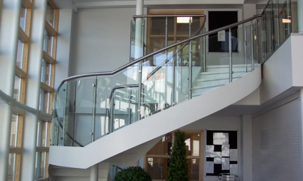 New composite block. New steel framed facility built on the site of the old swimming pool building. Piled foundations detailed around the existing pool structure. Building used as classrooms, sixth form block and changing rooms.