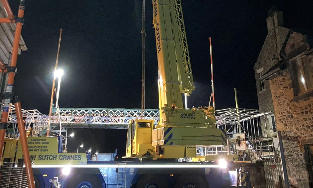 Refurbishment of a lattice truss footbridge over the railway. Due to limited headroom, the bridge was craned out and taken off-site to allow works to be undertaken in a workshop environment.
